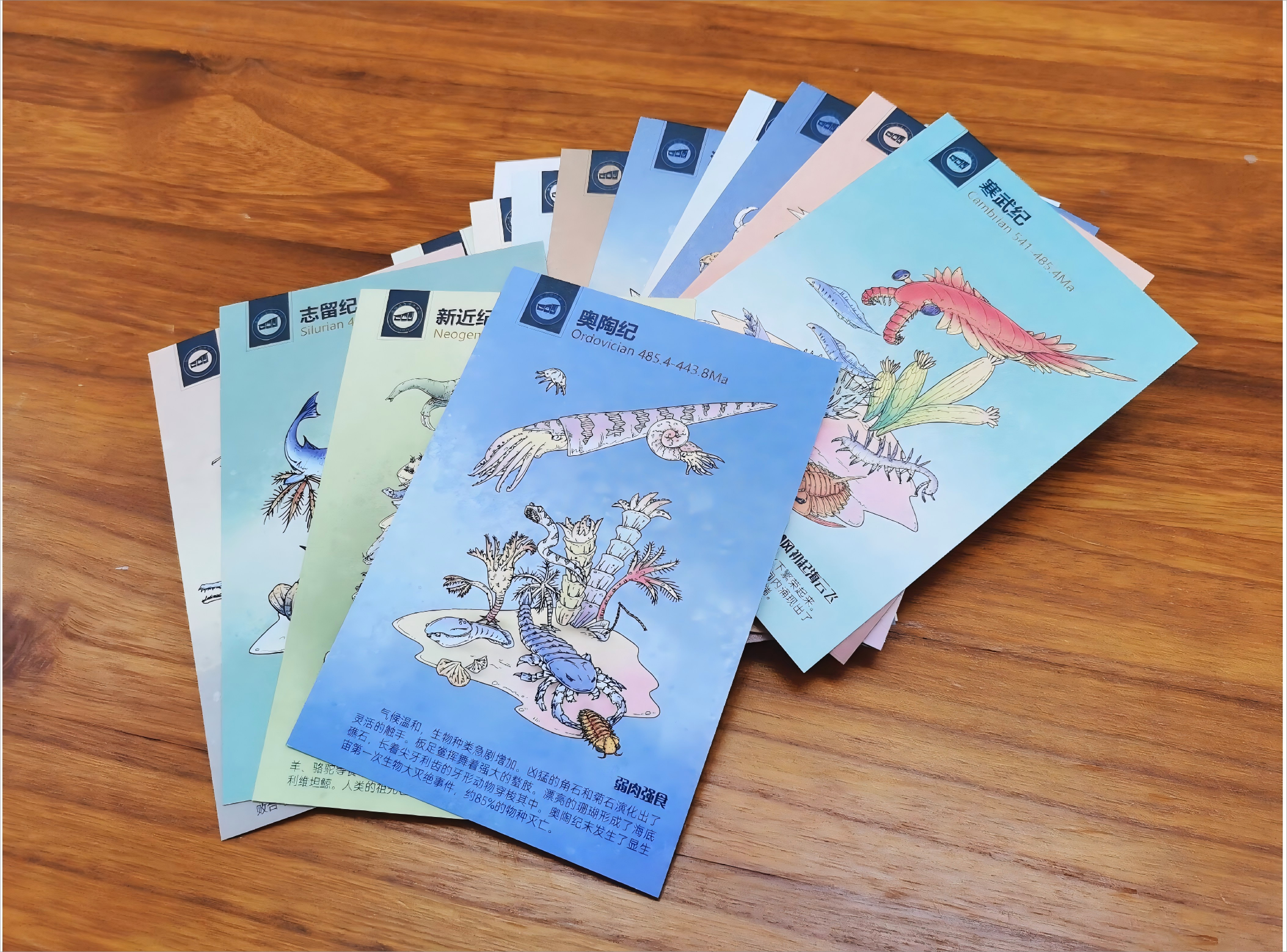 本系列明信片的設計靈感來源于地球歷史上的13個重要地質時代,從埃迪卡拉紀的生命起源到第四紀的現代生物多樣性,每個時代都有其獨特的生物群和地質特征。
